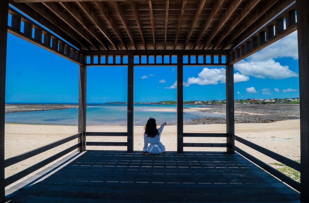 發呆亭│西嶼海灘涼亭》池西休憩好地方 很適合坐在這裡發呆的涼亭 藍天、沙灘、海景呈現出美妙的畫面【澎湖西嶼景點】