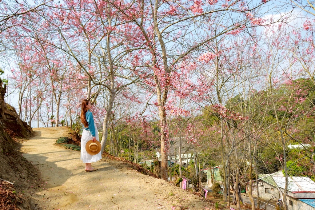 阿拉伯的粉紅村│嘉義花旗木粉紅村 │竹崎花旗木》山丘上開滿花旗木整片花朵盛開時相當壯觀 9年打造花旗木粉紅村 花朵布滿枝條搭配觀景吸引不少遊客前來賞花 【嘉義花旗木】【竹崎粉紅村花現秘境】