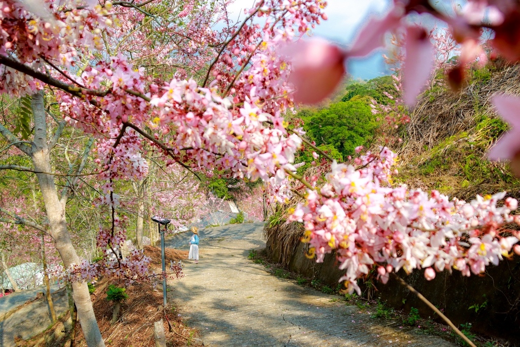 阿拉伯的粉紅村│嘉義花旗木粉紅村 │竹崎花旗木》山丘上開滿花旗木整片花朵盛開時相當壯觀 9年打造花旗木粉紅村 花朵布滿枝條搭配觀景吸引不少遊客前來賞花 【嘉義花旗木】【竹崎粉紅村花現秘境】
