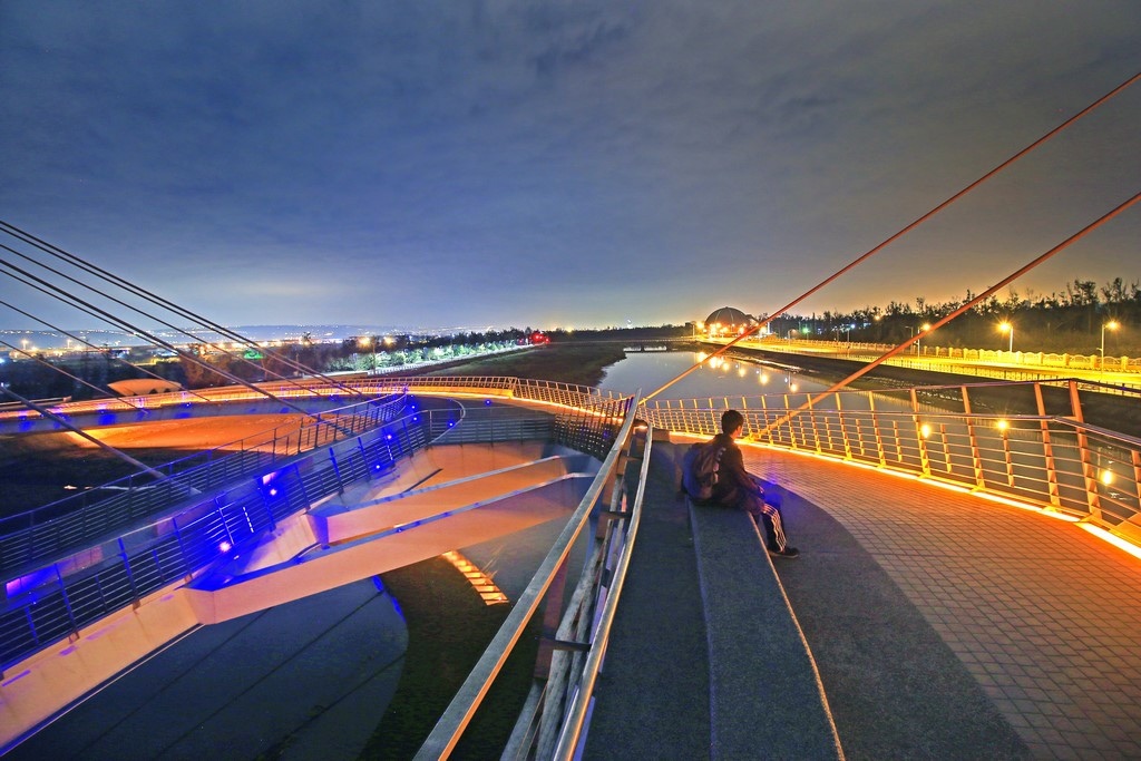 台中新景點高美濕地景觀橋(高美雙曲景觀橋)》高美新地標 國內首座雙塔雙弧線的斜張橋 坐在觀景橋欣賞落日海景 濱海景色盡收眼底【旅人狂潮@玩拍札記】
