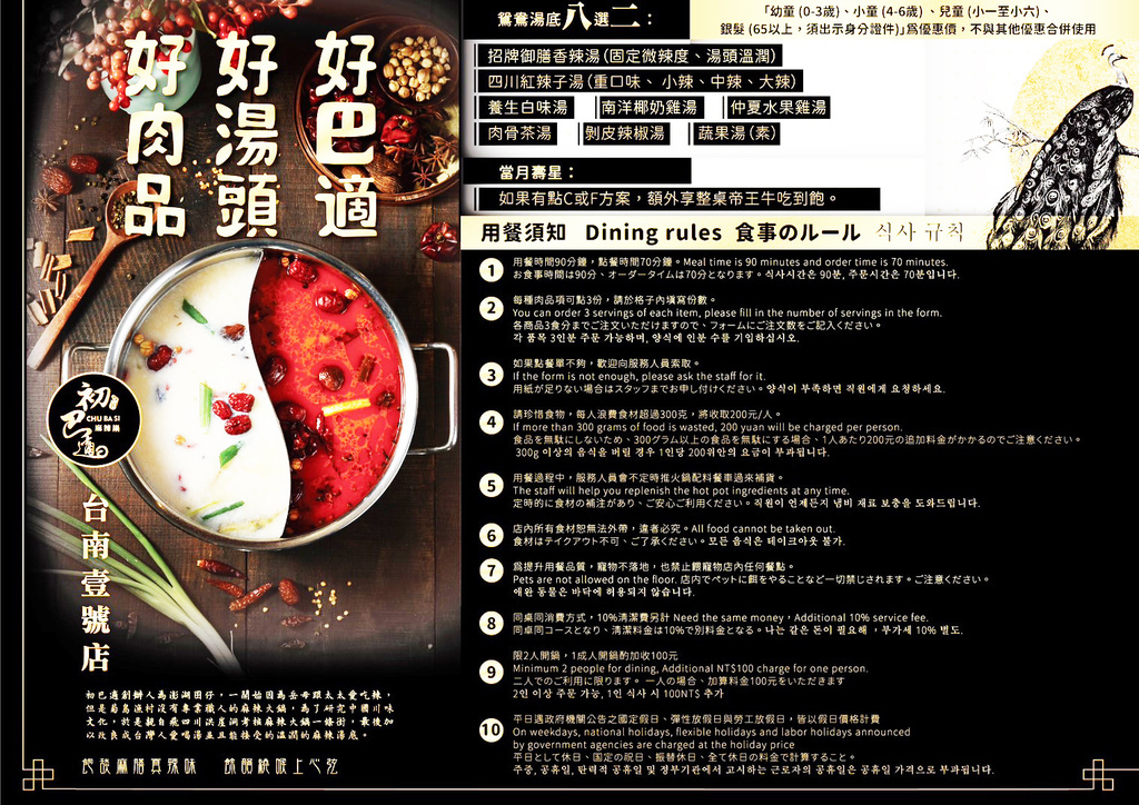 初巴適麻辣鍋-台南國賓店│台南麻辣鍋吃到飽│台南吃到飽》初巴適麻辣鍋-台南1號店 肉食主義的天堂 台南頂級辣麻辣鍋吃到飽 華麗歐洲古典風格如同皇宮貴族般的用餐感受 當月壽星享帝王牛吃到飽喔【台南美食】【台南火鍋】